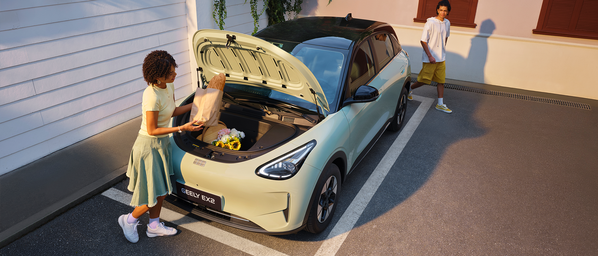 Geely EX2 выделяется своим футуристичным внешним видом, который подчеркивает индивидуальность владельца. Обтекаемые формы кузова, минималистичный интерьер и светодиодная оптика создают впечатление автомобиля из будущего.